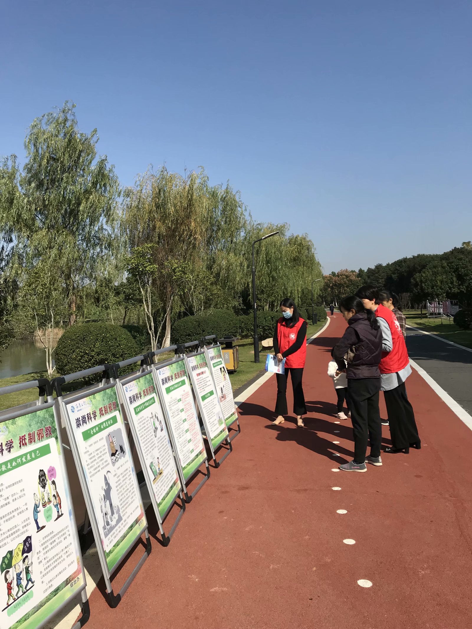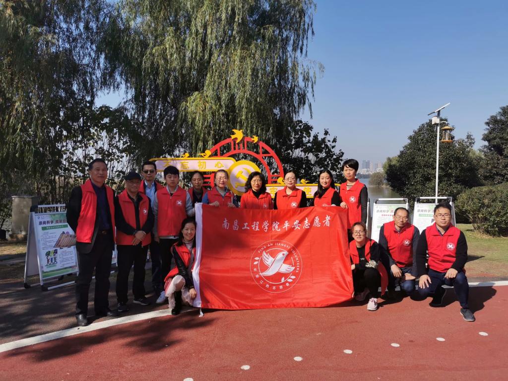 11月11号上午,评估中心联合教务处、科研处、组织部、工会、国际交流与合作处、统战部、金溪基地及外单位高新区投资集团来到南昌市高新区艾溪湖湿地公园开展“坚决抵制邪教 共创平安江西”志愿服务活动。