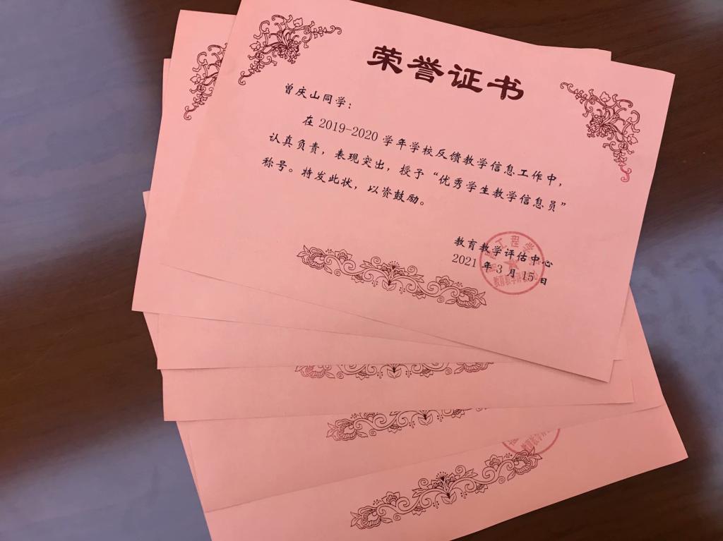 会上,桂家章宣读了《对2019-2020学年优秀学生教学信息员的表彰决定》,为我校优秀学生教学信息员颁发荣誉证书。